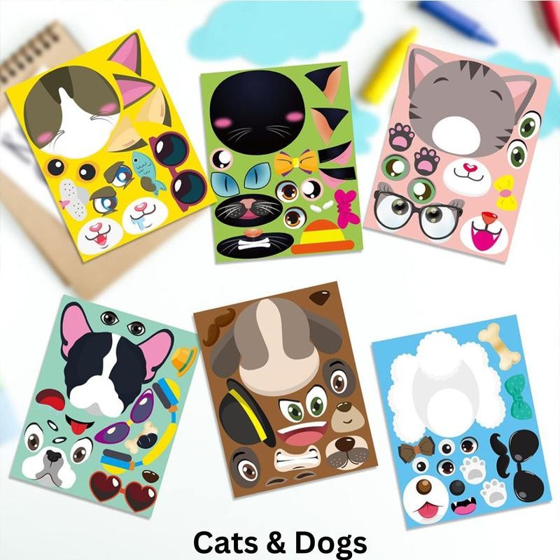 These make-a-face sticker games are a fun and interactive activity. These include a set of 6 character pages and stickers with various facial features such as eyes, noses, mouths, eyebrows, and accessories.