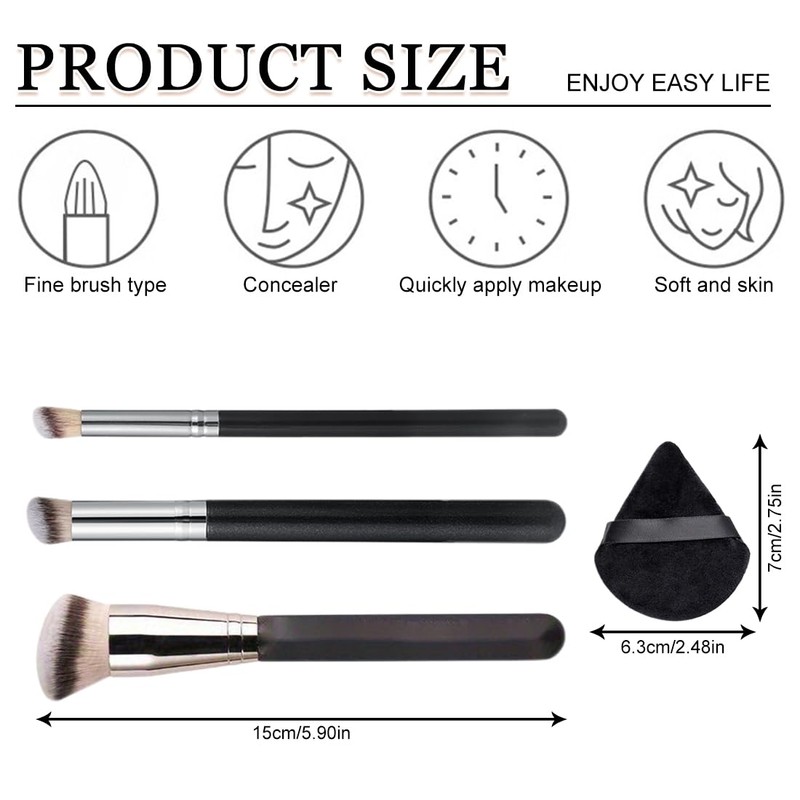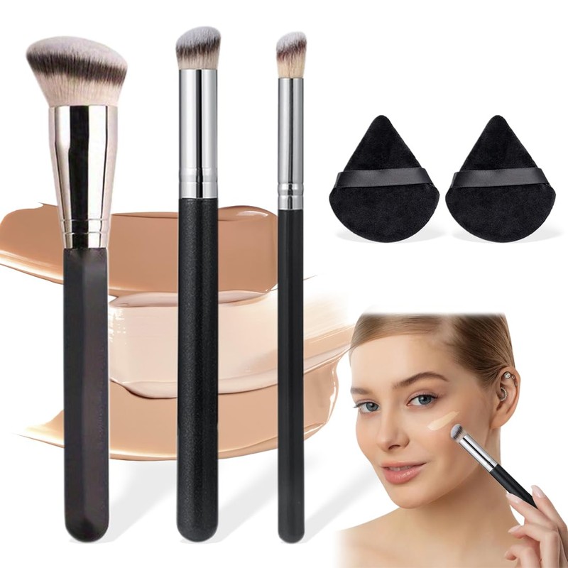 - Foundation-Pinsel-Set: Das Make-up-Pinsel-Set beinhaltet 3 hochwertige Make-up-Pinsel aus Fasern und 2 Puffs. Enthält einen abgewinkelten Foundation-Pinsel, einen abgewinkelten Concealer-Pinsel und einen kleinen Concealer-Pinsel, schwarz, sehr gut geeignet für das tägliche Make-up