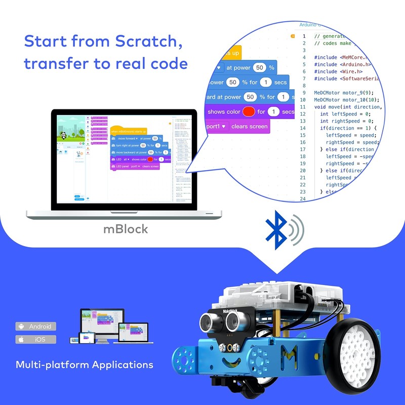 - 【Entry-level Coding Robot Toy】 Designed for learning electronics, robotics and computer programming in a simple and fun way, mBot robot kit is an excellent educational robot toys. From scratch to Arduino, this STEM projects for kids ages 8-12 helps kids to learn programming step by step via interactive software and learning resources.