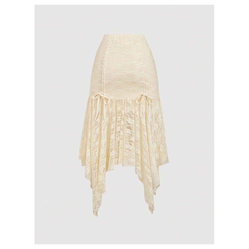 MakeMeChic Women's Lace Midi Skirt Asymmetrical Boho Drawstring Tie Waist A Line Stage Concert Skirts Cowboy Chic Outfits Apricot Large