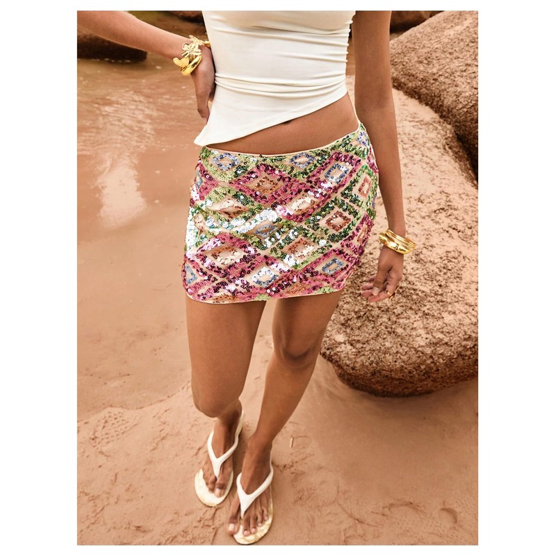 MakeMeChic Women's Sequin Sparkly Skirt Mini Micro Glitter Y2k Low Rise Summer Skirt Multicolor Large