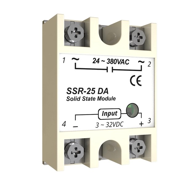 MAKERELE SSR-25DA Solid State Relay Input 3-32V DC to Output 24-380V AC 25A Single Phase Semi-Conductor Solid State Relay Module