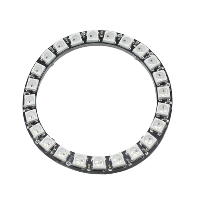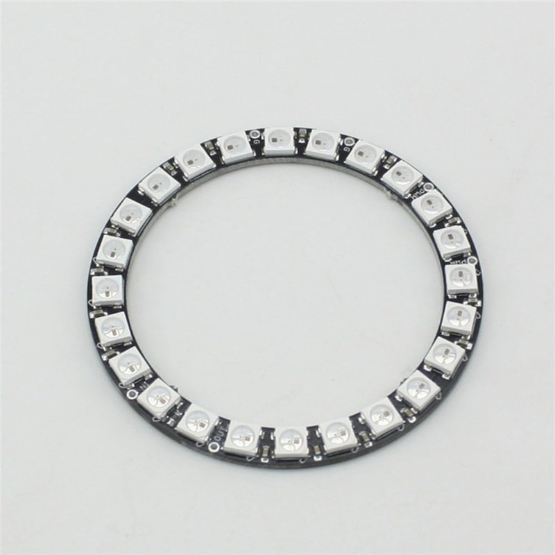 72 mm inner diameter 86 mm outer diameter 24 RGB LED pixel chip WS2812B 5V operating voltage 4 pins, VCC, GND, DI, DO ideal for Arduino and Raspberry PiBox contents: