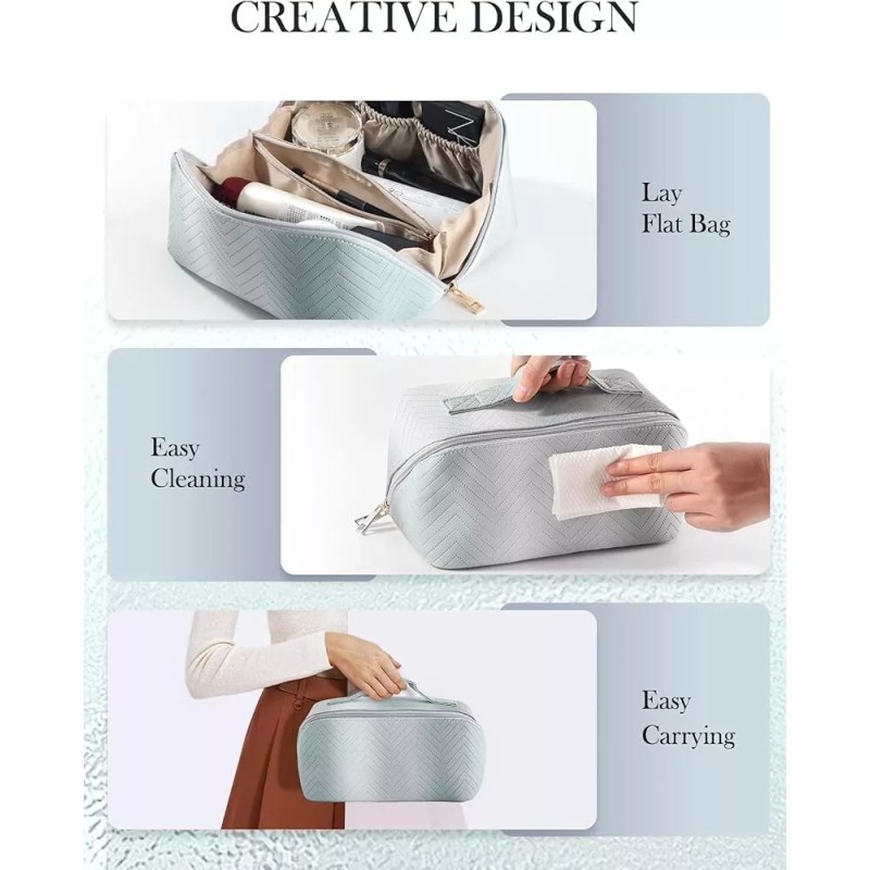 Makeup Bag Large Capacity Make Up Bag with Compartments Waterproof Lay Flat Cosm