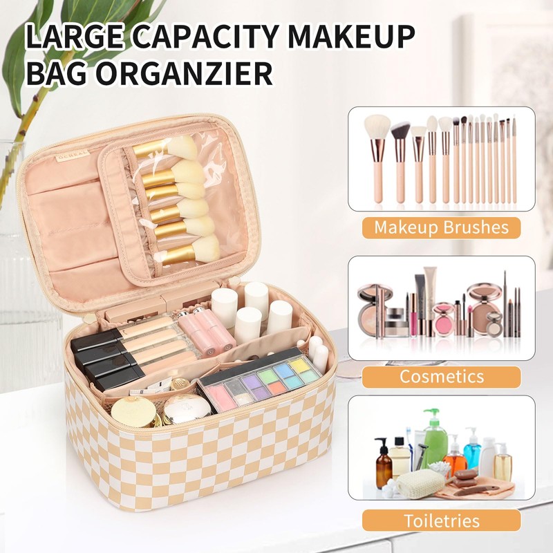 - Size: 9.4 x 6.5 x 4.7 (inch) . Portable and lightweight design makeup bag for women which makes the makeup travel bag fit for suitcases and easy to carry. Do your makeup anywhere. The smooth two-way zippers allow easy access.