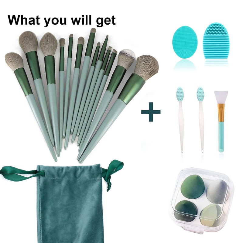 • Comprehensive Makeup Brush Set : This set includes 13 makeup brushes and a storage bag . In addition, we also prepare a silicone face-pack brush, a sponge egg set, and two silicone lip brush, a brush cleaning egg, and a silicone facial cleansing brush. This set is a good choice for beauty lovers.