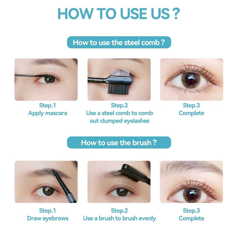 2-in-1 design, can be both used as an eyelashes brush and eyebrow brush.