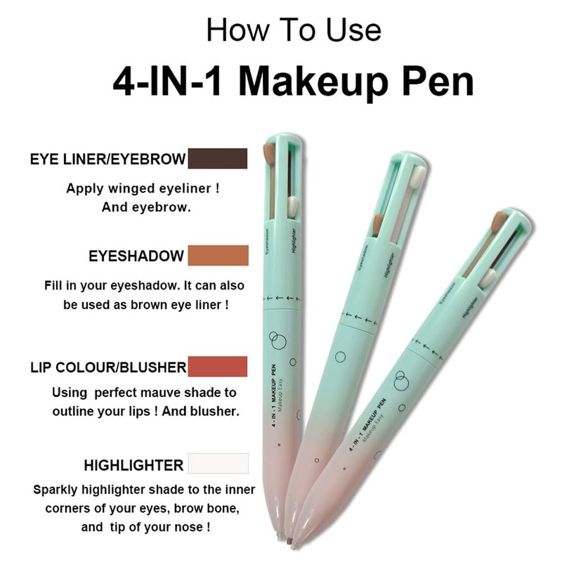 - Easy to carry: This is a 4-in-1 multifunctional make-up pen, small and lightweight, which can be placed directly in your backpack. Whether you go out, travel, gathering, daily life, birthdays, weddings, etc. You can adjust your makeup anytime and anywhere.