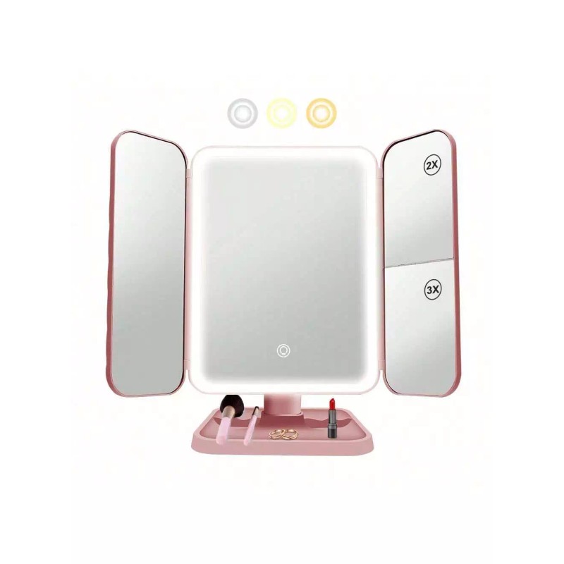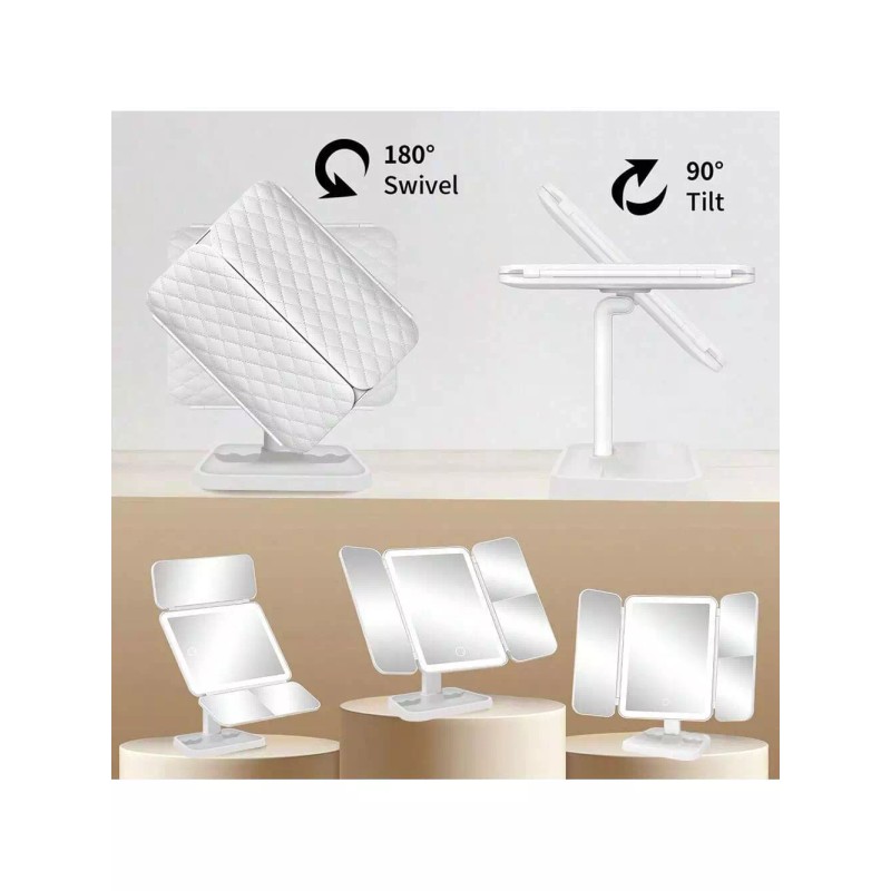 Makeup Vanity Mirror LED Adjustable Touch Screen 1x/2x/3x Magnification Tri-Fold