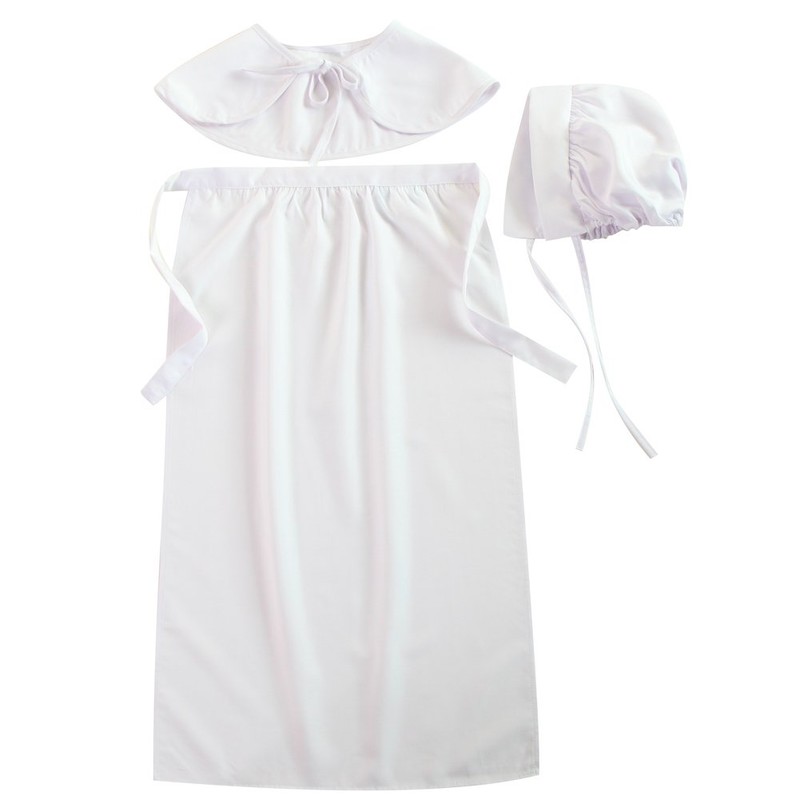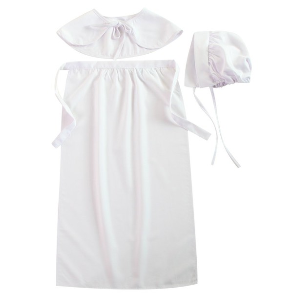 - Includes a 3-piece pilgrim or puritan style costume accessory set - Long 30" apron, colonial bonnet and tie-on collar