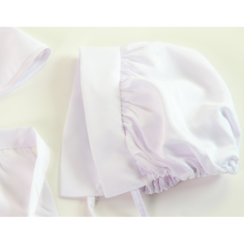 Dimensions for Girls 3-Piece set: Apron measures approx. 30" long and 14" across the waist with 14" ties, Neck circumference on collar is approx. 17" and Collar measures approx. 6" long with 13" ties, making the neck circumference adjustable