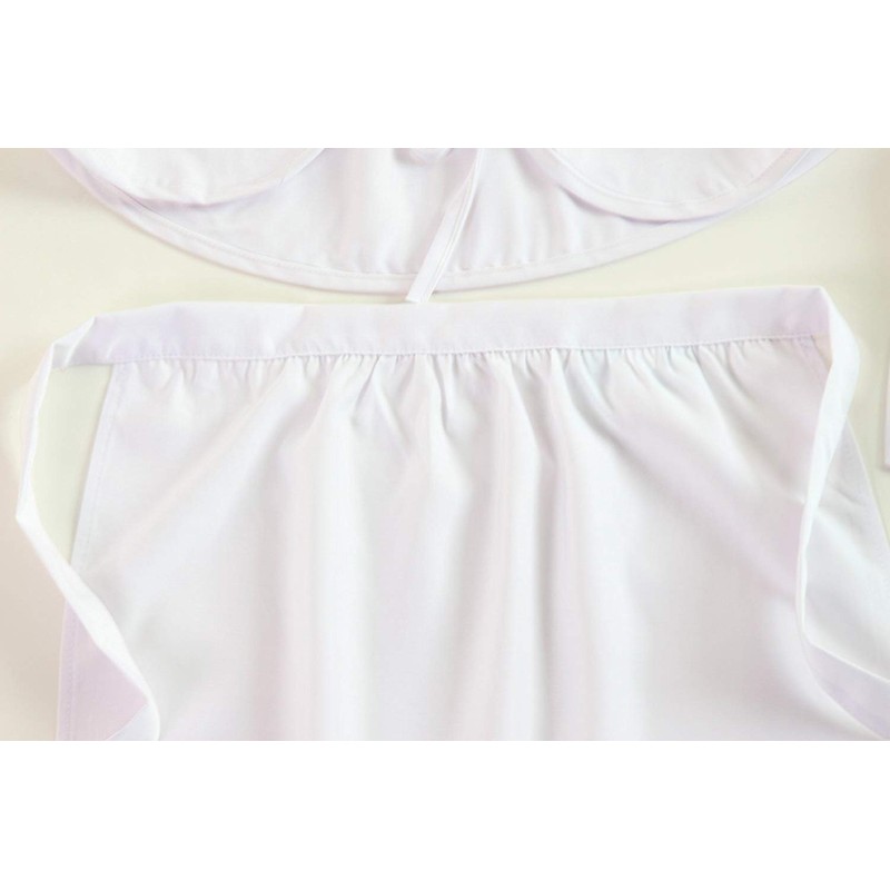 Dimensions for Women 3-Piece set: Apron measures approx. 30" long and 15.5" across the waist with 15" ties, neck circumference on collar is approx. 19" and collar measures approx. 7" long with 13" ties.