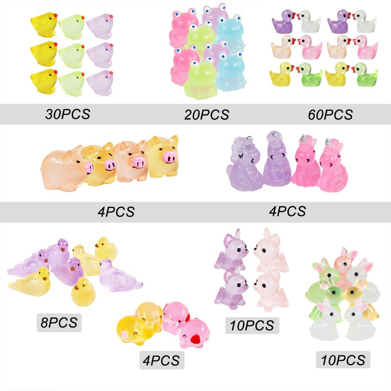 MAKIOTEKO 150 Pcs Luminous Mini Resin Animal, Tiny Animals Figures to Hide Miniature Figurines Glow in Dark Mini Ducks Chicks Frogs Landscape Dollhouse Fairy Garden Accessories