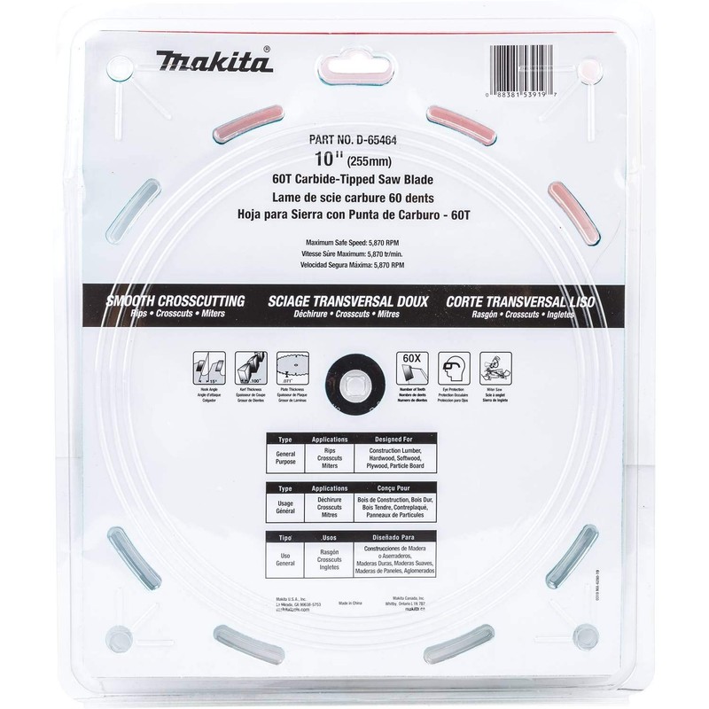 Makita D-65464 10" 60T Micro-Polished Miter Saw Blade, Smooth Crosscutting