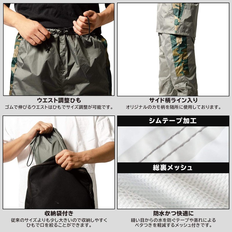 [Makku] Raincoat (Water Resistance: 15,000 mm H2O) (Permeability: 10,000 g/m2) (Reflective Printing) (Hem Adjustable Tape Function) (Hood Roll-Up) (Large Storage Pocket), Black, M