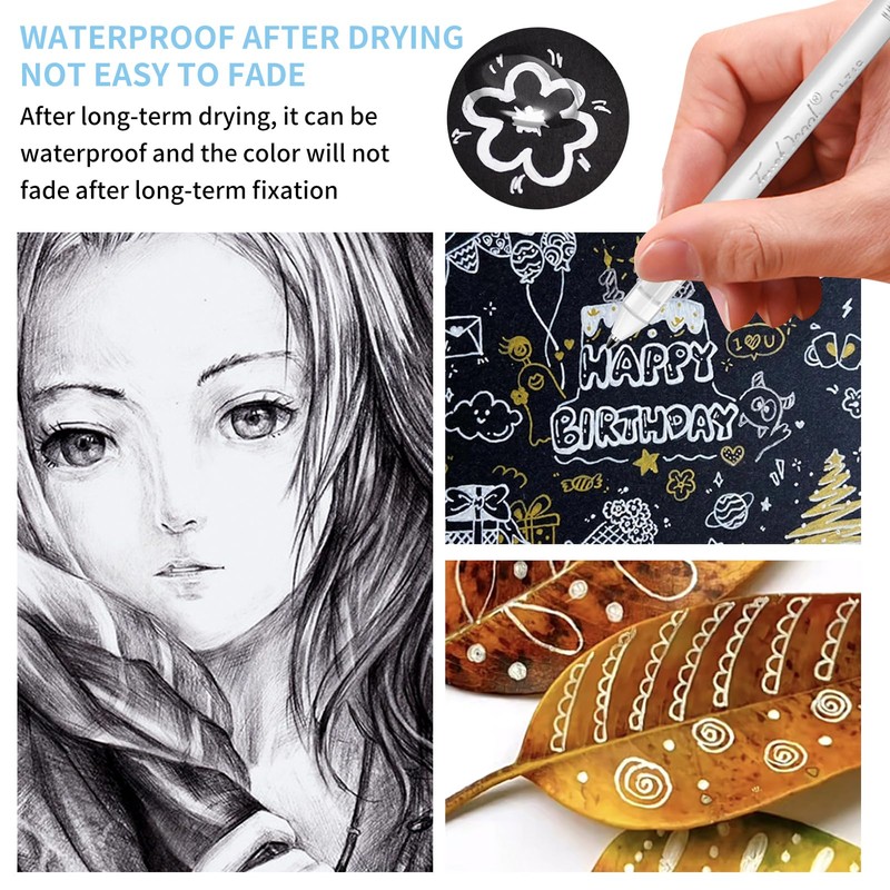 - 【Versatile Highlighter Pen】 Ideal for highlighting fine details in artwork. Works well with watercolors, colored pencils, markers, and paints, especially on dark surfaces.