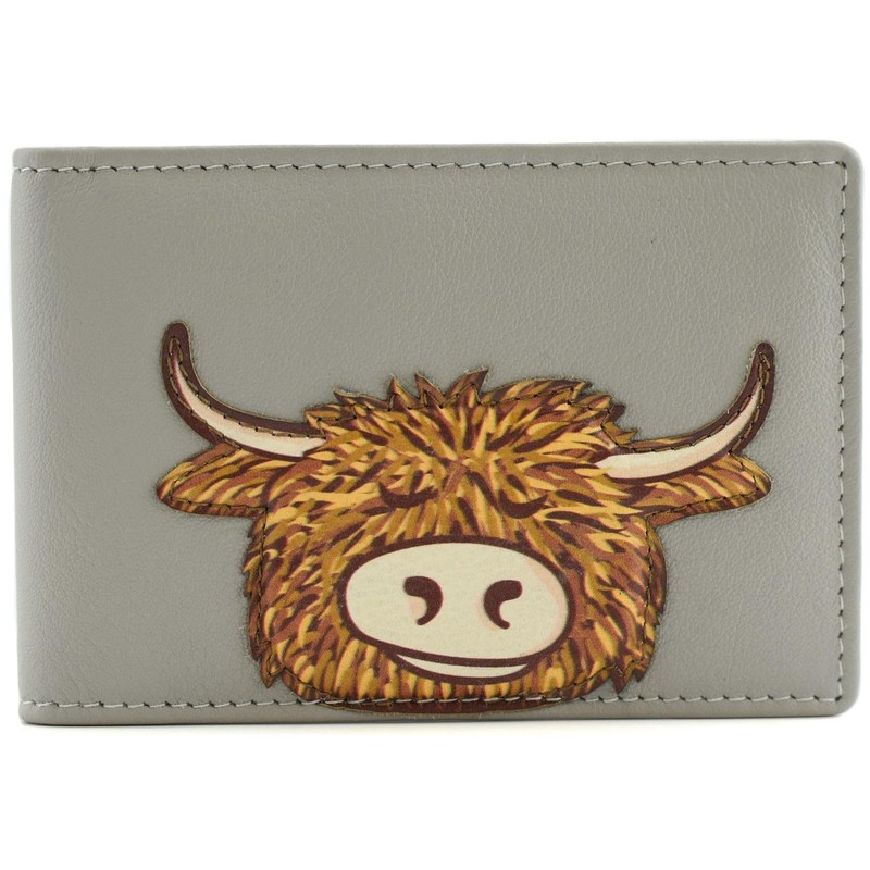 - Soft supple leather travel/credit card holder with applique 'highland cow' detail 10.5cm x 7cm x 1cm.