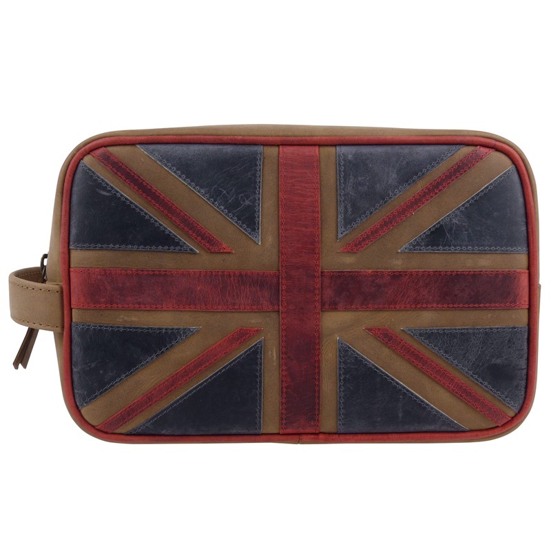 - Lovely quality Union Jack wash bag from Mala Leather, with a vintage distressed wartime appearance.