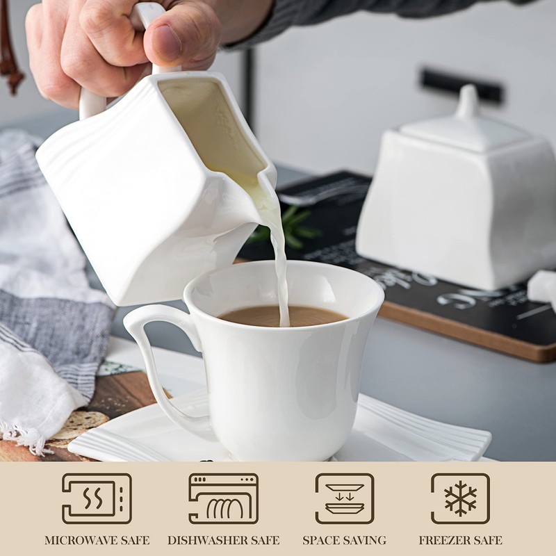 - Compliance with traditional highest craftsmanship. High-quality porcelain selection, unique and artistic glazing technology as well as a precisely controlled temperature burn ensure that each plate looks light and thin and is durable in actual use. Includes 1 x milk jug [5 inches/12.5 x 7 x 8 cm/217 g] and 1 x sugar bowl [4 inches/10 x 7.5 x 10 cm/297 g].