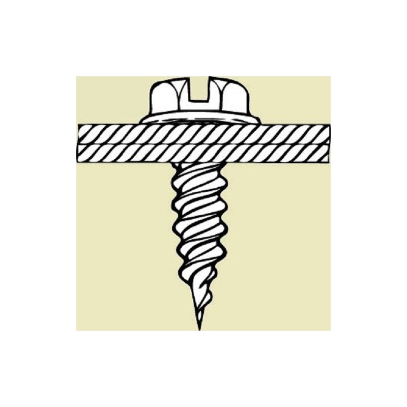 • Undercut-indented hex washer slotted head always seats flush.