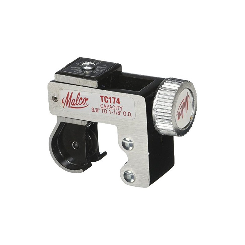 The Malco TC174 Big Imp Tube Cutter is a compact cutter that requires only 1-15/16" of clearance yet accommodates tubing from 3/8" to 1-1/8" outer diameter. The Big Imp will cut copper, aluminum, brass and thin wall tubing. The Big Imp has a lightweight aluminum body and has a spare cutter wheel that is included with the tool.