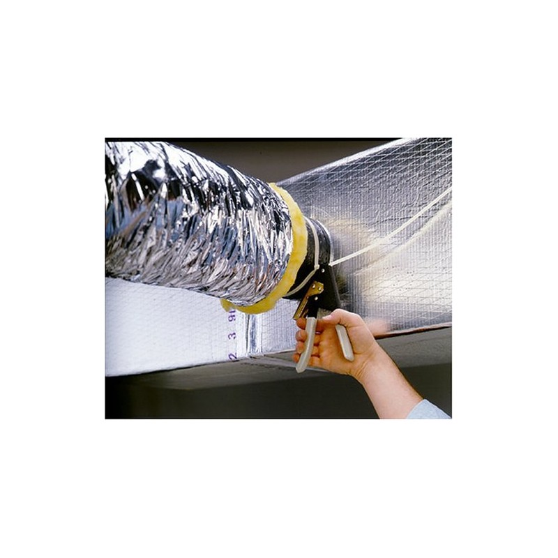 - Tightens and cuts the straps used to attach flexible duct to the take-off collar for register runs