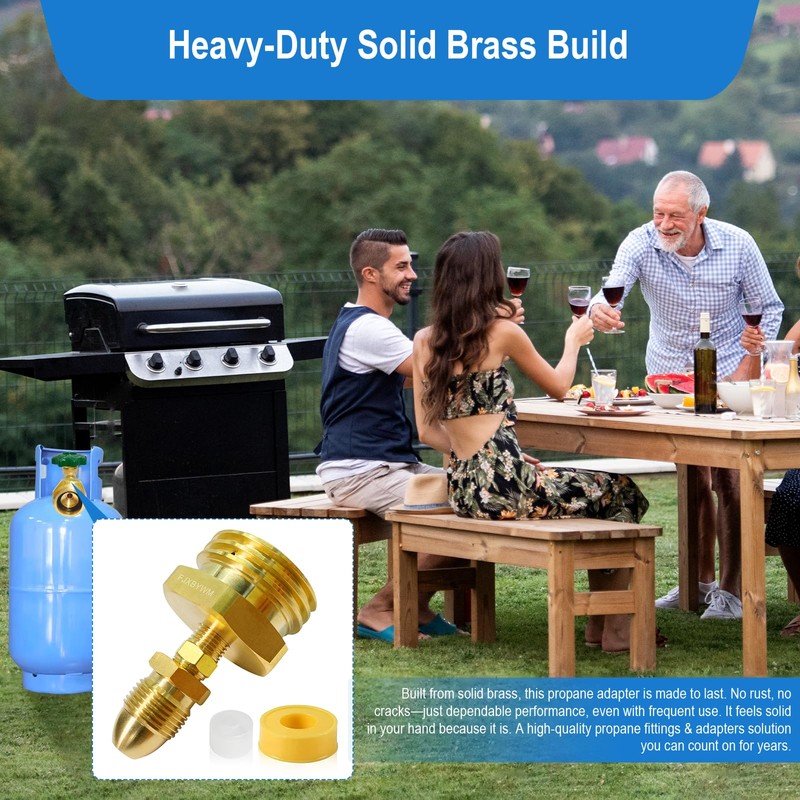 - Heavy-Duty Solid Brass Build: Built from solid brass, this propane adapter is made to last. No rust, no cracks—just dependable performance, even with frequent use. It feels solid in your hand because it is. A high-quality propane fittings & adapters solution you can count on for years.