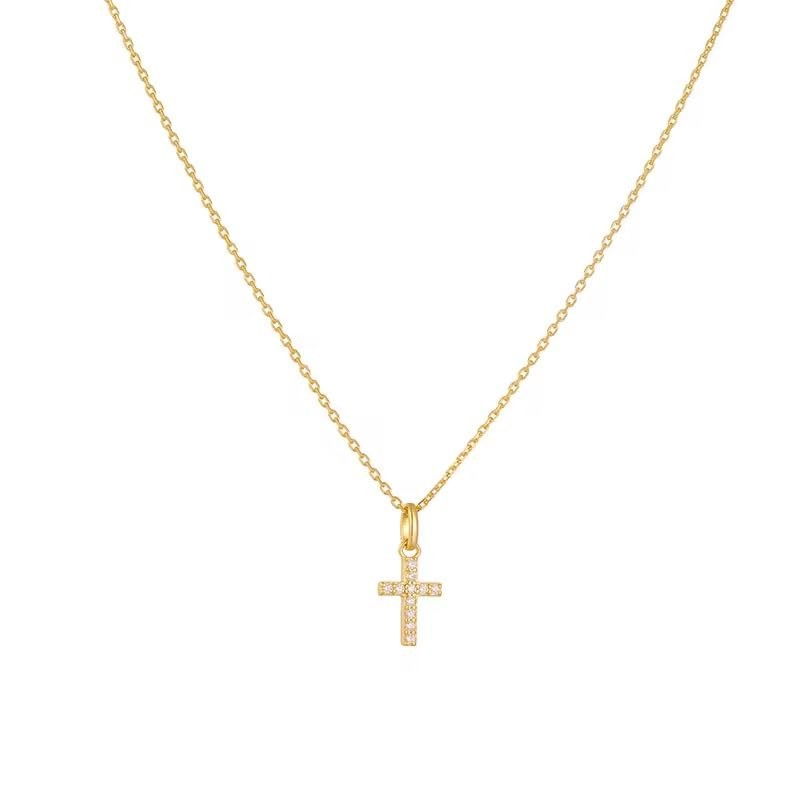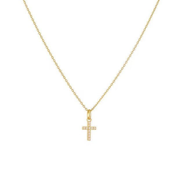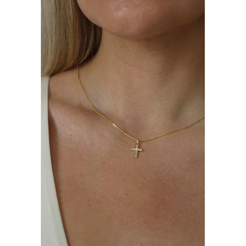 This Malibu Sunday Cross Pendant is a classy minimilast 18k gold plated take on the cross to show your daily faith in an understated way.