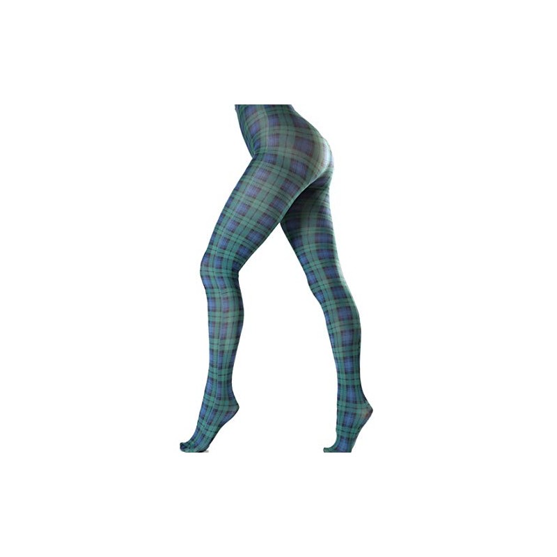 Malka Chic Green Plaid Patterned Opaque Tights For Women