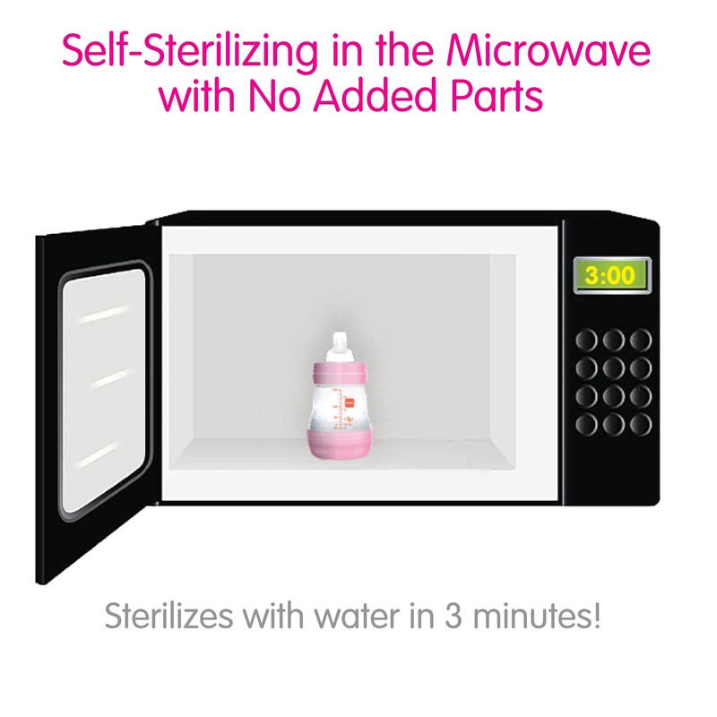 - Fácil de limpiar: nuestros biberones tienen aberturas anchas especialmente diseñadas en la parte superior e inferior para una limpieza fácil, total y máximo flujo de aire para el secado, se pueden esterilizar en el microondas en 3 minutos.