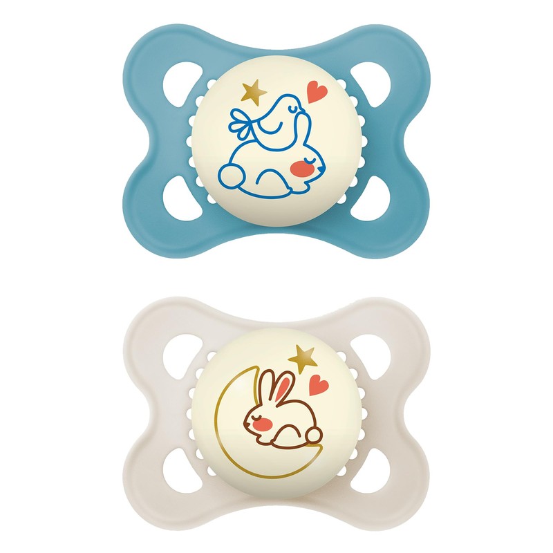 MAM Original Night Dummy Set of 2, Rubber with Dummy Box, 2-6 Months, Neutral