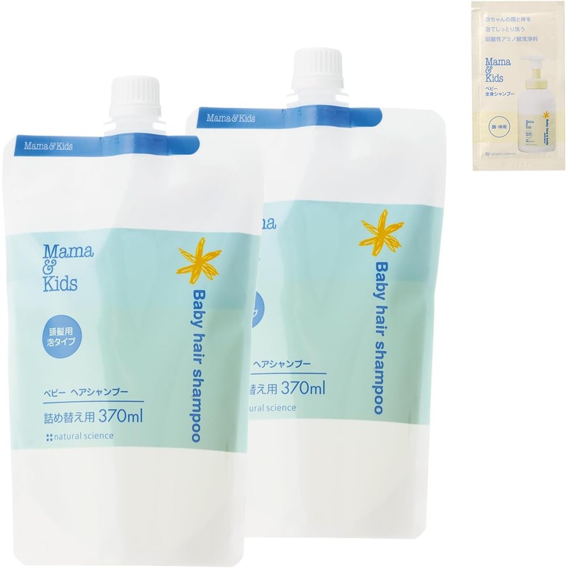 Mama & Kids Baby Hair Shampoo, Refill, 12.5 fl oz (370 ml), Set of 2 (1 Sample Package)