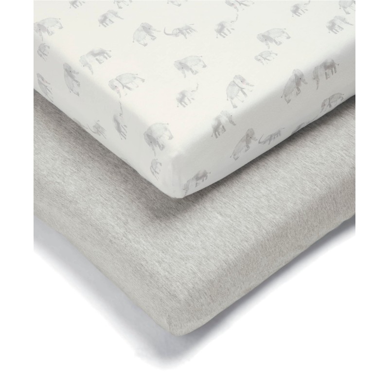 Mamas & Papas 2 Pack Cot/Bed Fitted Sheets, Elephant