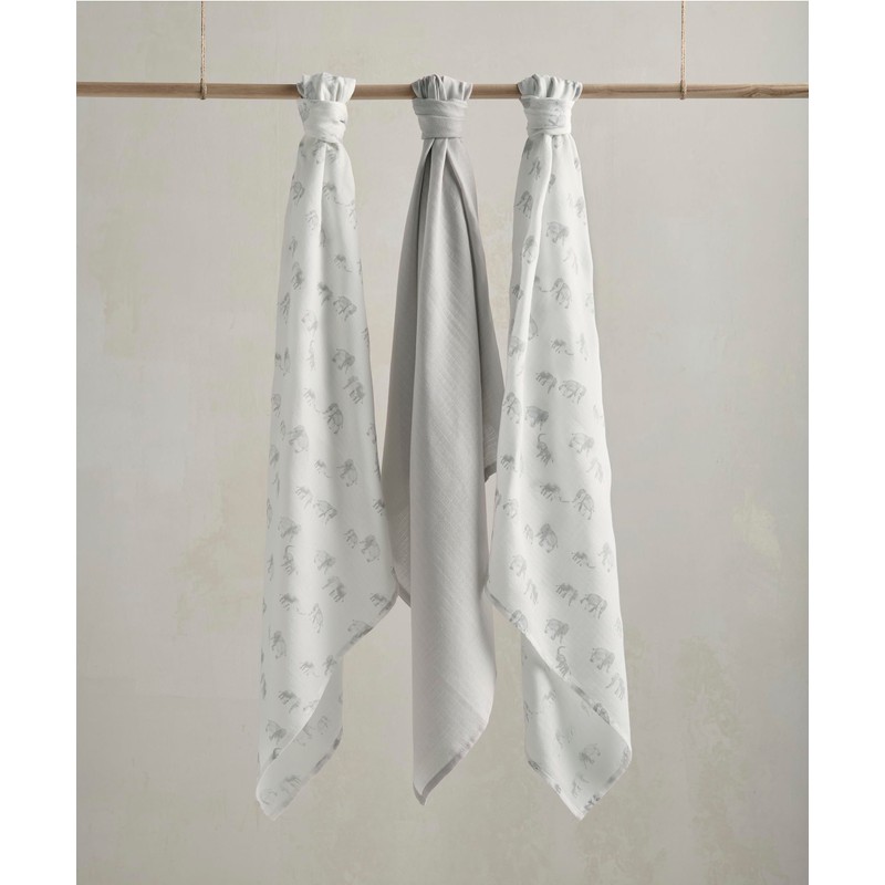 Mamas & Papas 3 Pack Large Cotton Muslin Squares, Elephant