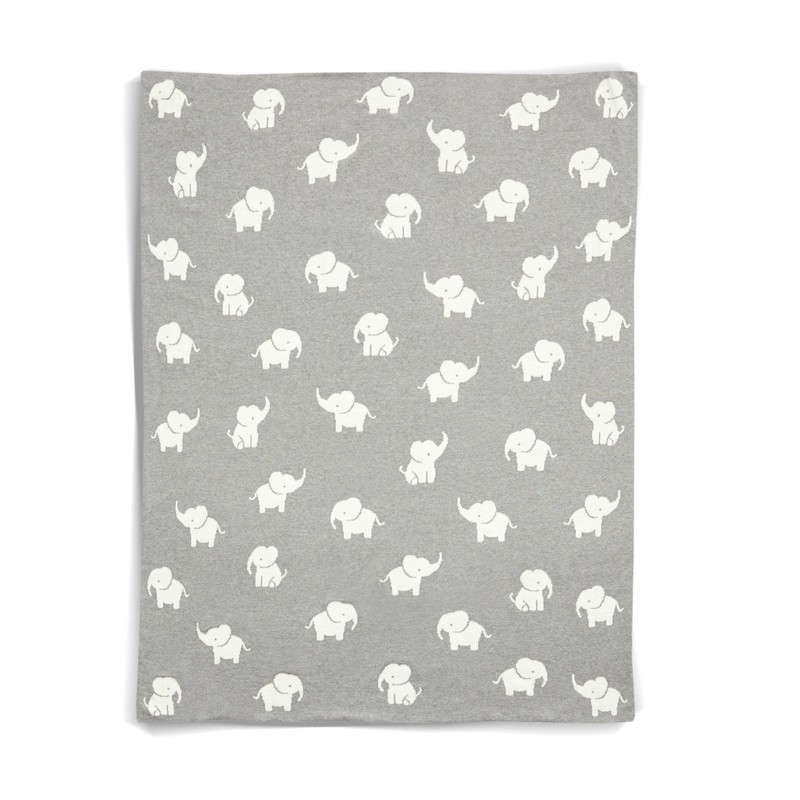 - Suitable from newborn, adorable knitted blanket made from 100% soft cotton. Features neutral grey and white colours and adorable elephant print.