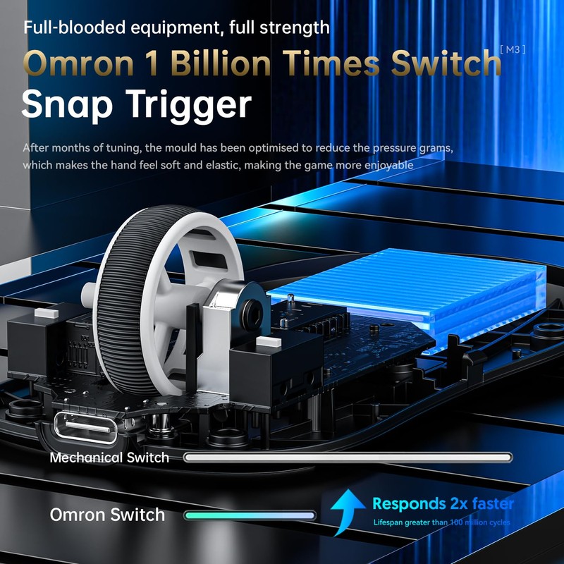 • Ultra-Lightweight Engineering: The MAMBASNAKE M3 achieves portability and control balance with its ultra-lightweight 39g body, featuring a compact structure and molded design for durability. The silicone-coated surface and ergonomic grooves conform to palm contours, reducing fatigue during extended use, while the "ice-coating" texture minimizes sweat buildup. The 61.7mm compact width fits small-to-medium hands perfectly.