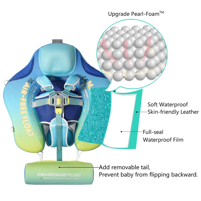 Made of three layers of soft fabric, Skin-friendly, Breathable, soft and smooth, pretect your baby's skin. Two colors choices, make these Non-inflatable mambo baby swim float a good friend of your kid.