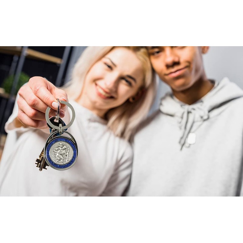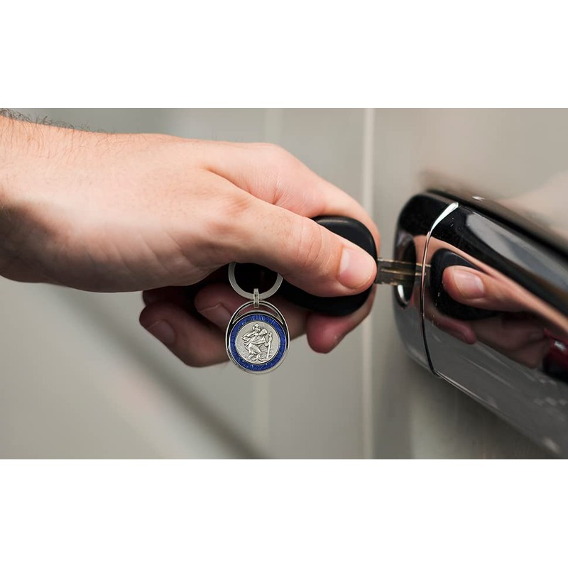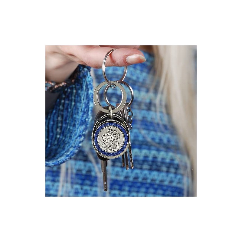 Saint Christopher key rings are very popular among our customers and are often given as a small souvenir. Especially this pendant stands out thanks to its high-quality workmanship and the blue edge. Saint Christopher is a patron saint for his wearer and lucky companion in everyday life.