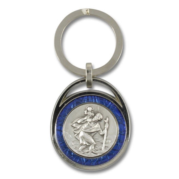MaMeMi Saint Christopher Keyring with Blue Trim, blue