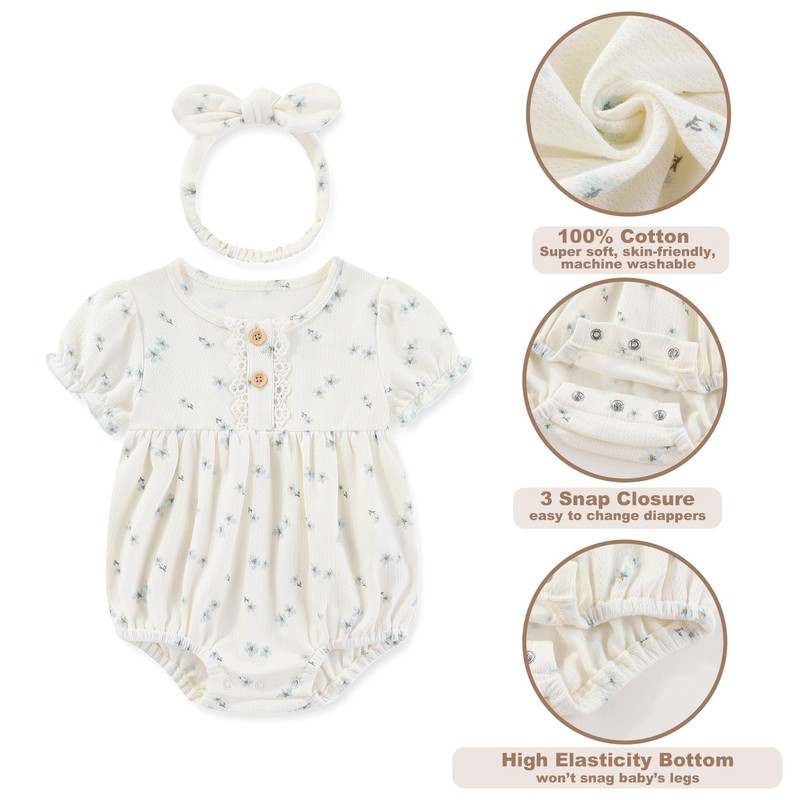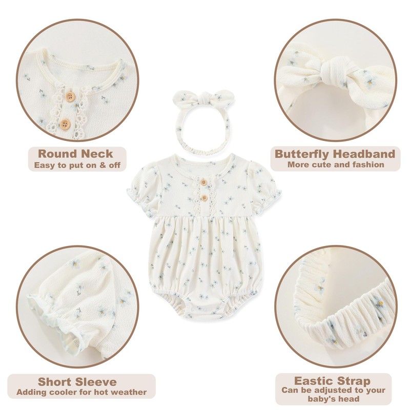 - Design: These Baby Short Sleeve Bodysuits with headband, making your little one look more cute and elegant. Perfect for daily wear, family gathering, beach, photography, wedding and special occasion.