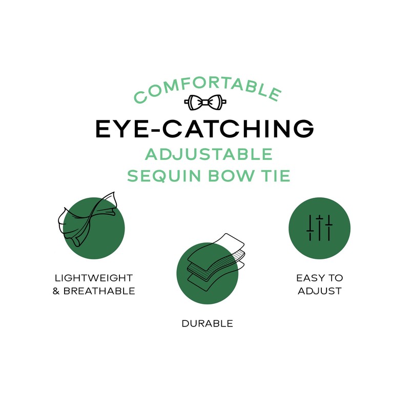 Man of Men Sequin Bow Ties for Men - Pre-tied Adjustable Length Bowtie, Many Colors to Choose From (Green)