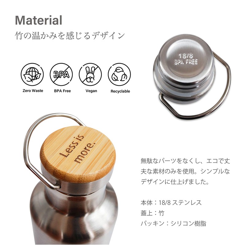 - Unique Design: This stainless steel eco bottle features the warmth of bamboo and the cool touch of stainless steel