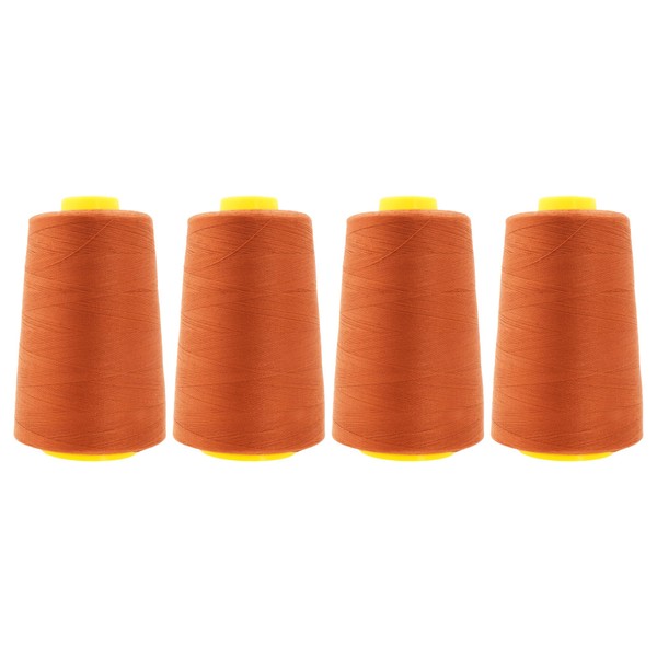 Mandala Crafts All Purpose Sewing Thread Spools - Serger Thread Cones 4 Pack - 40s/2 24000 Yds Rust Polyester Thread for Overlock Sewing Machine Quilting