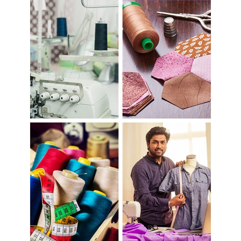 • Bulk sewing thread kit; Large 4 polyester thread spools; Each sewing thread spool: 6000 yards; Serger thread set: 24000 yards; Continuous machine sewing thread; 40S/2 sewing thread cone: 4.25 X 3 X 3 In; 40wt serger sewing thread
