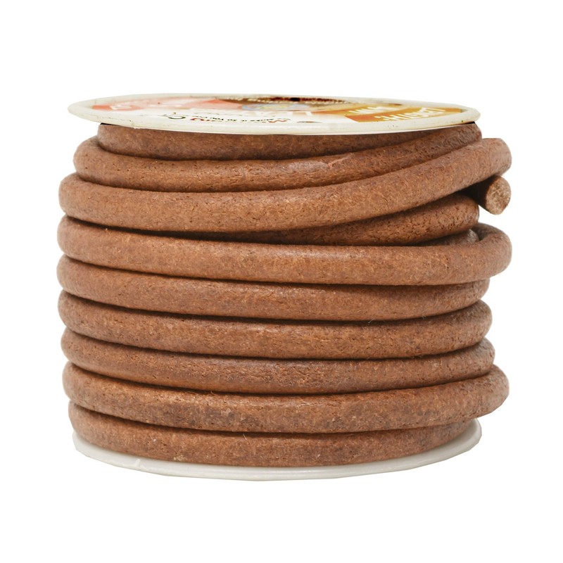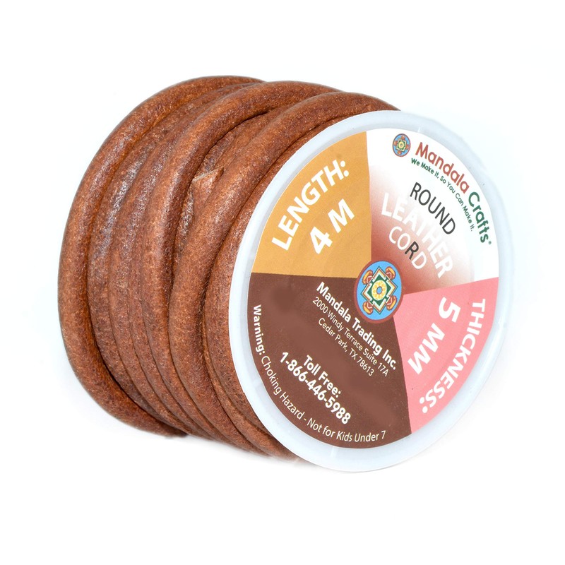 - Bulk Leather Spool: The continuous 4m or 4.4 yards long 5mm round leather cord spool is made from the best part of cowhide. Easy to knot and cut unlike most coated leather strands, the odorless plain natural leather round cord will not peel.