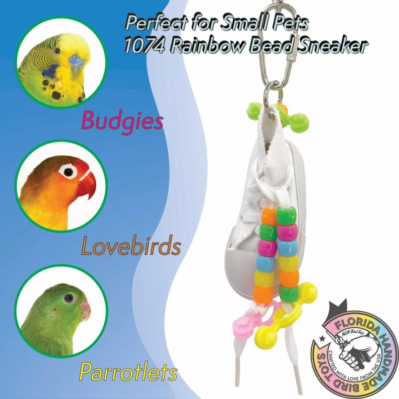 Mandarin Bird Toys 1074 Rainbow Bead Sneaker - Handcrafted Chewable Hanging Simple Bird Cage Toy