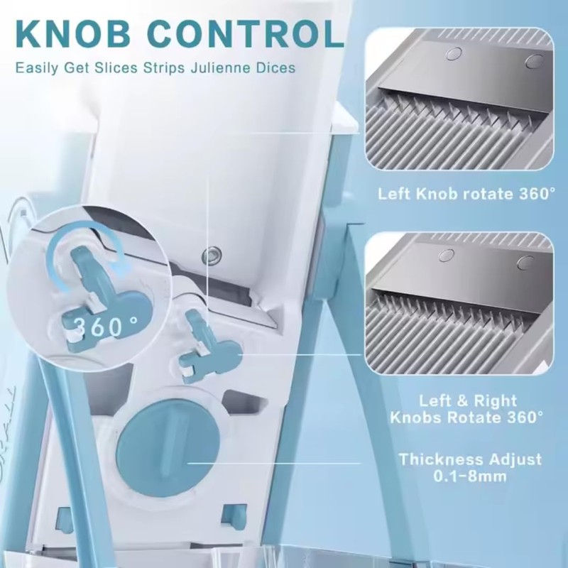 • Adjustable Slicing Thickness: Effortlessly customize your cuts with adjustable blades, allowing for precision slicing, dicing, and julienning of vegetables to suit any recipe.