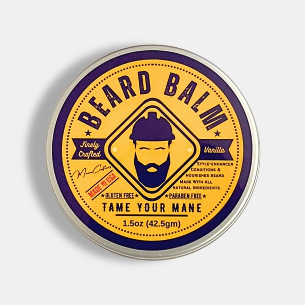 Tame Your Mane with our Finely Crafted Beard Balm with a delightful vanilla scent. Crafted with a blend of the finest ingredients, this balm not only provides hold and control but also deeply nourishes and conditions your beard. Infused with the warm, soothing aroma of vanilla, it transforms your grooming routine into a delightful experience. Our balm ensures your beard stays soft, smooth, and impeccably styled, all while delivering a subtle, irresistible fragrance.  Enriched with the nourishing power of carrot seed oil, our balm not only deeply conditions but may also offer a natural defense against UV rays. The 100% pure cold pressed carrot seed oil is known to have a natural SPF helping to protect your beard from sun damage while also providing your beard and skin with essential vitamins and antioxidants.  INGREDIENTS:  prunus amygdalus dulcis (sweet almond) oil, helianthus annuus (sunflower seed) oil, cold pressed (argan) nut butter, cold pressed daucus carota L (carrot seed) oil, cocos nucifera fractionated (coconut) oil, persea gratissima (avocado seed) oil, beeswax, butyrospermum parkii (shea) butter, oryza sativa (rice bran) oil, tocopherol (vitamin e), natural fragrance oil.