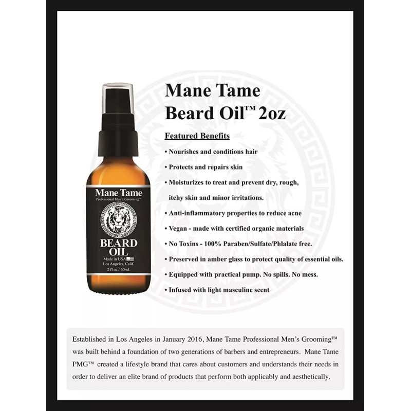 Mane Tame Aceite Acondicionador Barba Y Bigote Mane Tame 2oz Cn Aroma