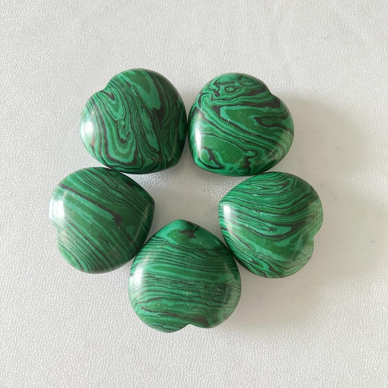Manekieko Manekieko Synthetic Malachite Palm Worry Carved Heart Love Stone,40mm Crystals and Healing Stones